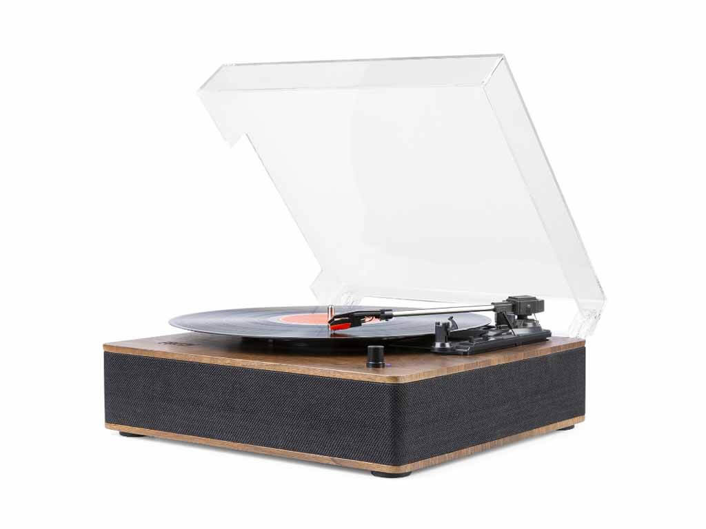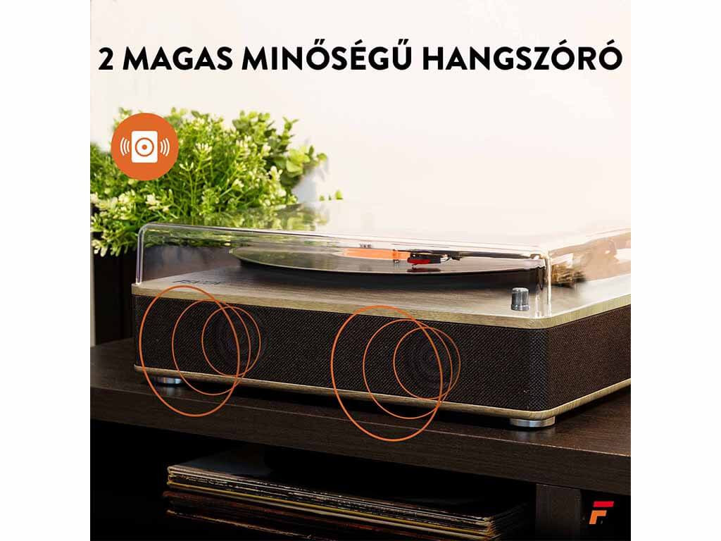Élvezze a bakelit autentikus hangzását, és játssza le az összes lemezt a Fenton RP161 lemezjátszóval, amely két sztereó hangszóróval rendelkezik. A beépített BT vevővel a digitális zene vezeték nélkül is streamelhető okostelefonról, táblagépről vagy más BT-kompatibilis eszközről, és hallgatható a sztereó hangszórókon. Ez a kiváló minőségű lemezjátszó masszív, kézzel készített faházzal és eltávolítható átlátszó porvédővel van felszerelve. Az RP161 kompakt méretű, így bárhová könnyen magával viheti.