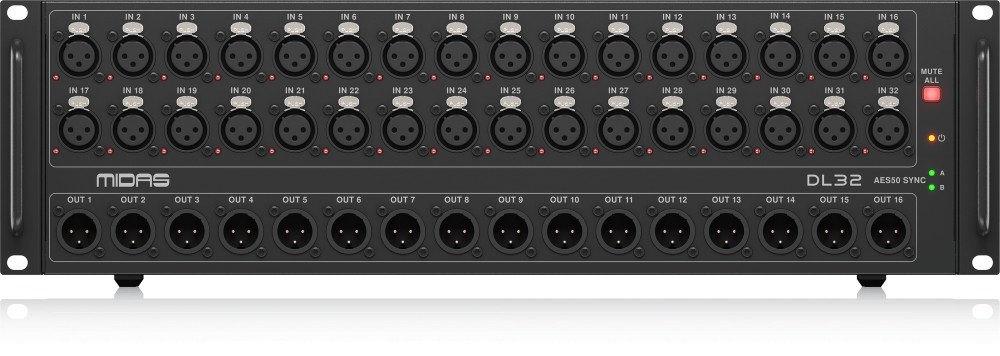 A digitális keverés gyakorlatilag mindent forradalmasított az élő szórakoztató produkciós munkafolyamatban. A DL32 a tökéletes megoldás a színpadi tehetségek összekapcsolására a házimozi (FOH) keverőpulttal és a világ többi részével – a be-/kimenetekkel teli és rendkívül megfizethető DL32 digitális stage box. A DL32 32db Midas PRO sorozatú távvezérelhető mikrofon előerősítőt, valamint 16 szimmetrikus analóg XLR visszatérő bemenetet kínál a színpadi oldalon – és mindössze egyetlen Cat 5e kábelre van szükség hozzá. Míg a Klark Teknik, a high-end digitális hangfeldolgozás piacvezetője, feltalálta az AES50 SuperMAC technológiát, amely mindezt lehetővé tette – a kiváló gyártási volumenünk teszi a DL32-t rendkívül megfizethetővé.