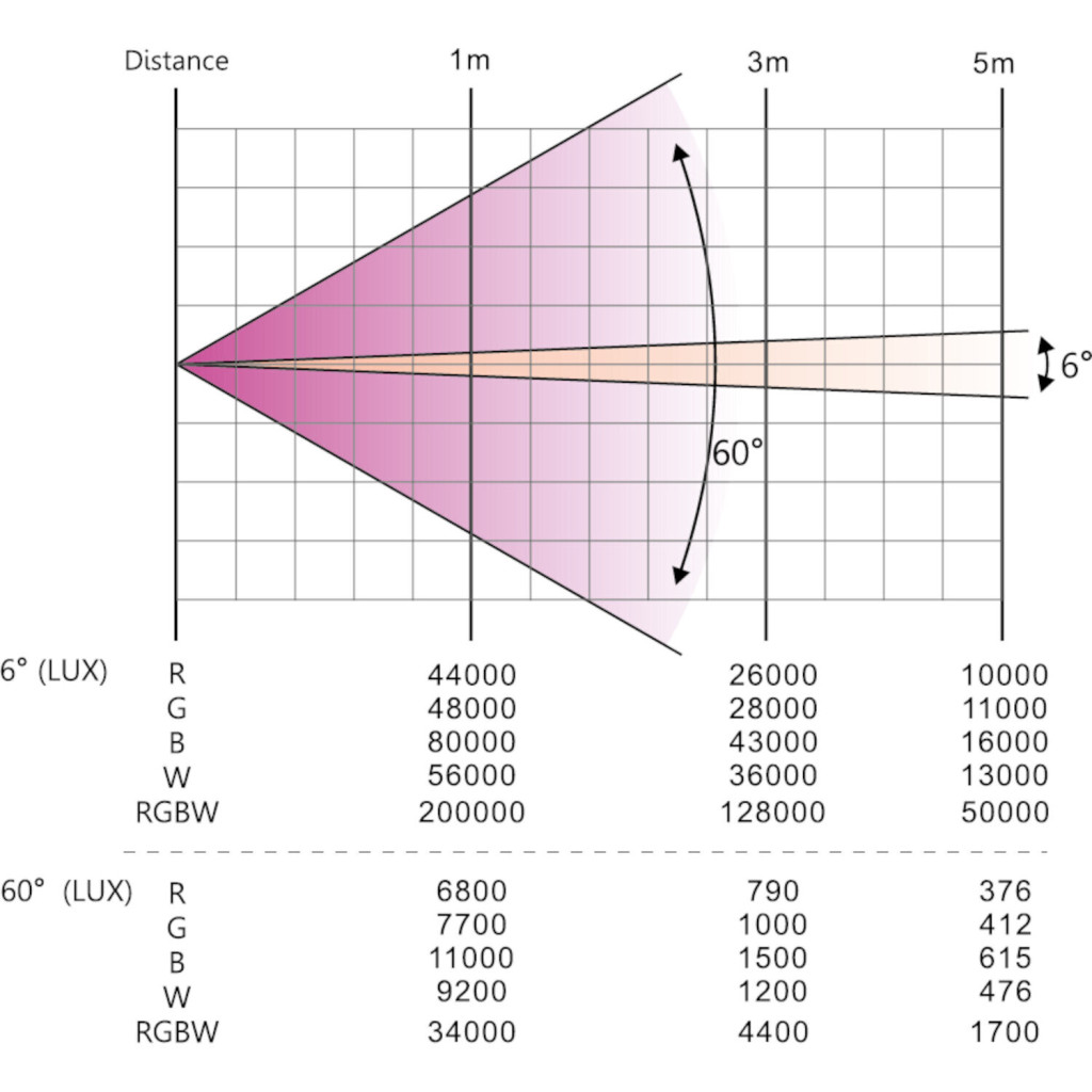 - Fényforrás: 19 x 40 W RGBW LED + 46 0.2 W RGB SMD LED