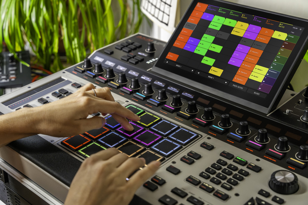 - Hozzárendelhető előadói érintősáv a Performance FX, hangjegyismétlések, csatornafaderek és egyebek tapintható vezérléséhez
