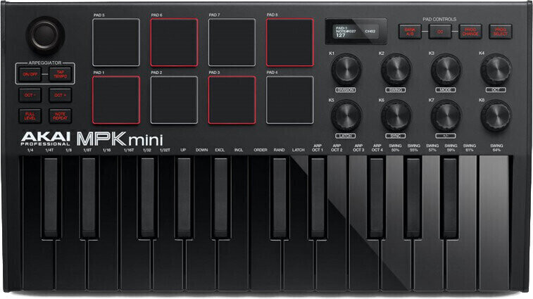 Minden Akai Pro billentyűs kontroller elmaradhatatlan kellékei a legendás MPC padok – az MPK mini mk3 sem kivétel. A 8 pad egyenesen a csúcs MPC szériából érkezett – a bankokba rendezett, velocity-érzékeny, háttérvilágítással ellátott MPC padok precíz ujjdobolást tesznek lehetővé, még a legigényesebb felhasználó számára is.