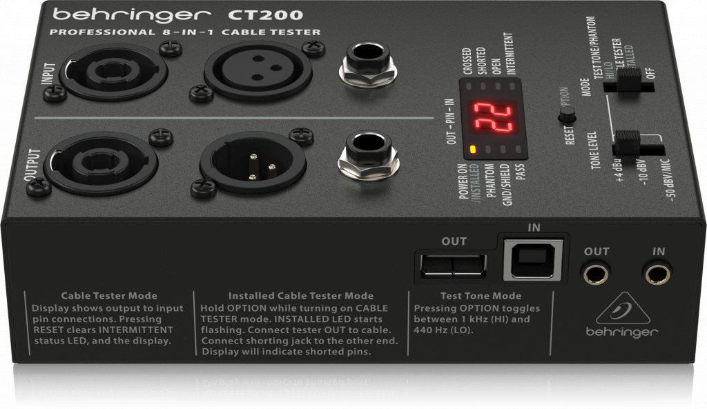 Fogadja az összes szabványos csatlakozót: XLR, Speakon*, TRS (1/4", 1/8"), RCA, RJ45, MIDI és USB