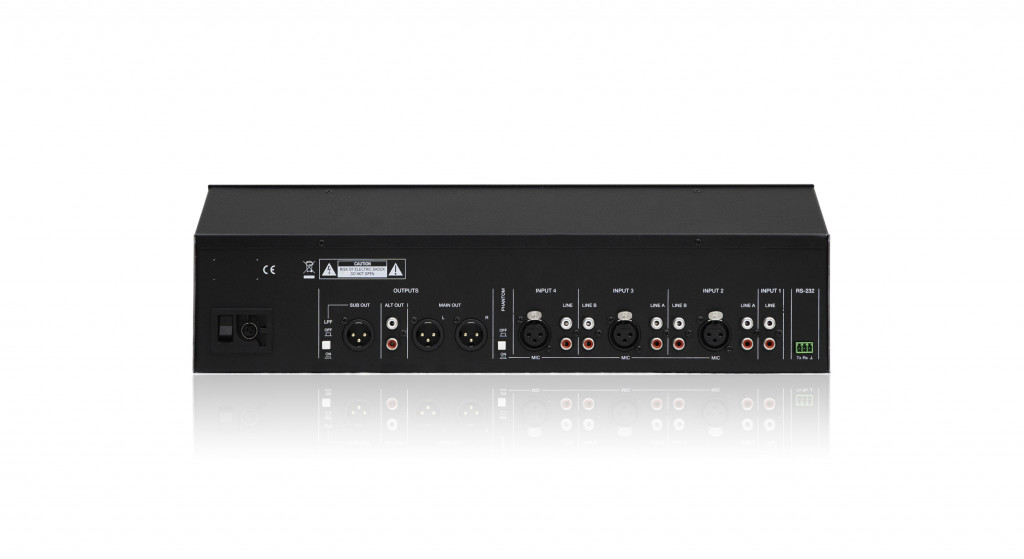 - 4 csatornás analóg keverőpult, egy csatorna állítható talkoverrel