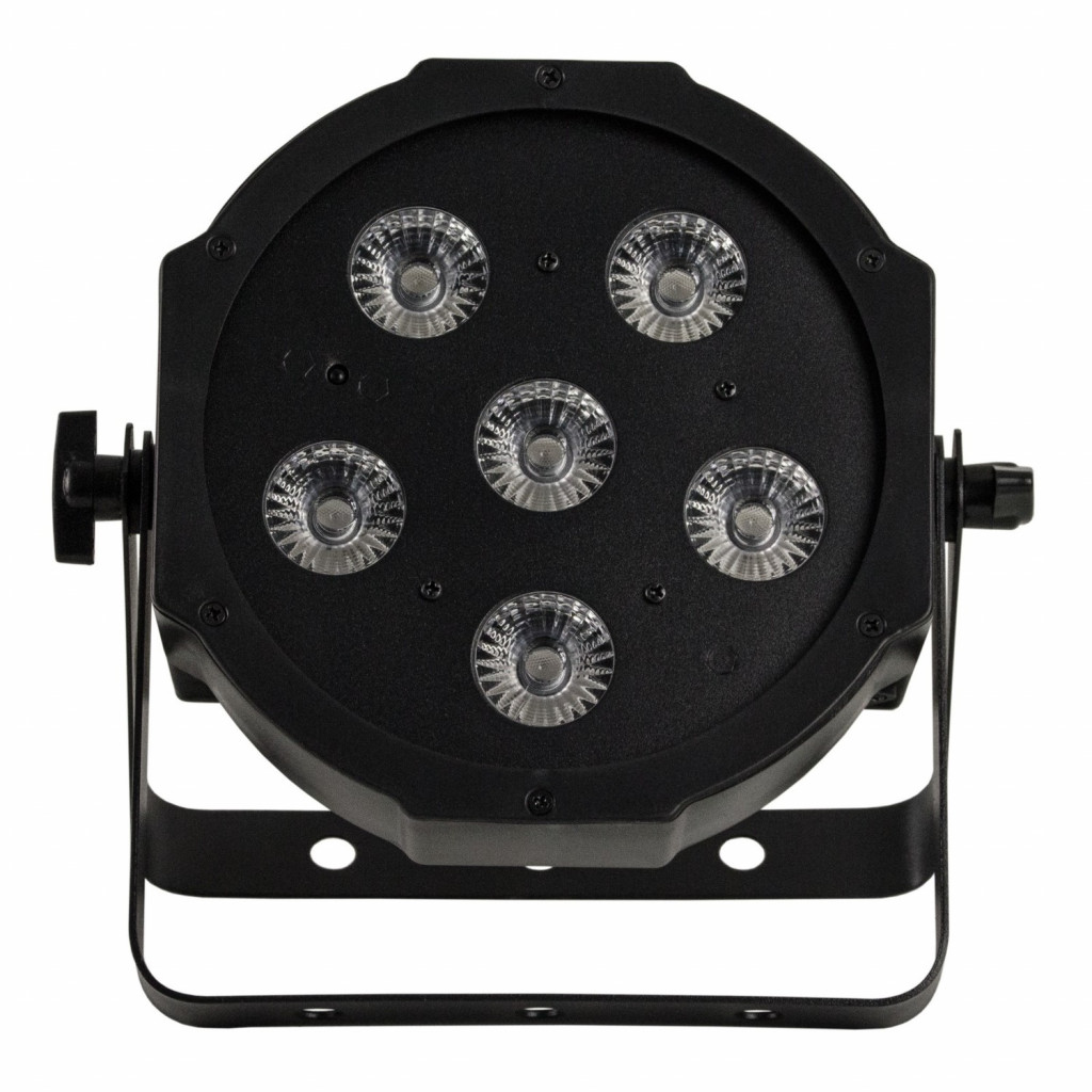 Kompakt kivitelű, lapos LED-es lámpa 6db 4W-os erős LED-el, rendkívül élénk színekkel. Használható audomata színváltó, hangvezérelt, és fénypultról vezérelt DMX módban is. Halk ventillátorral szerelt kivitel, így a csendes hűtésnek köszönhetően kiválóan megfelel olyan alkalmazásokhoz, ahol korlátozott a hely nagysága és zajmentes működésre van igény.