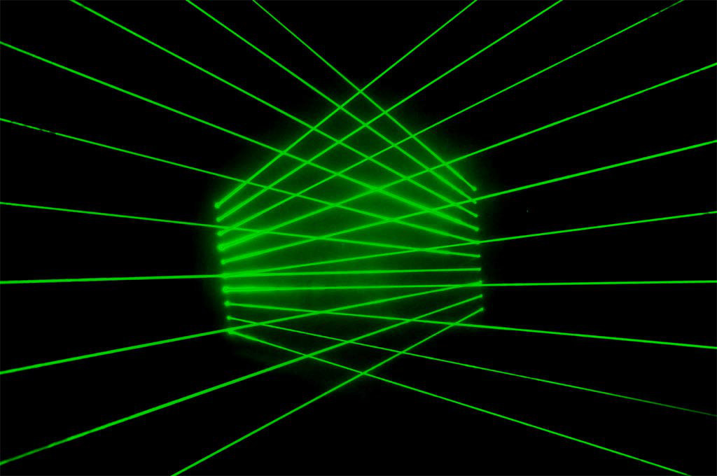 10 fejes rekesznyílású lézerrendszer extra fényes zöld sugárkimenettel és DMX vezérléssel. Alkalmas közepes és nagy méretű eseményekhez és kiválóan alkalmas színpadi hatások létrehozására.
