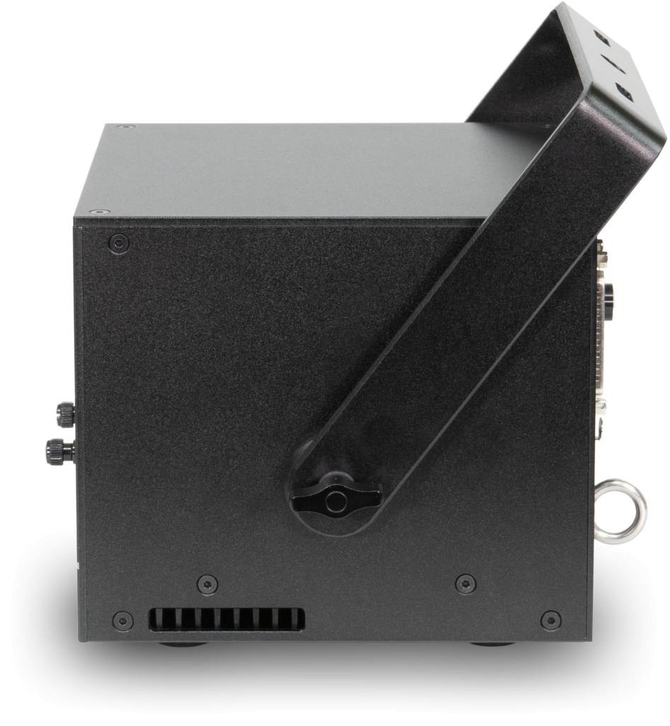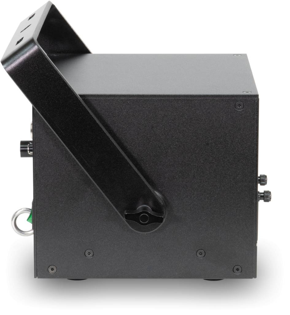 A Laserworld CUBE 1 diódalézer kompakt házzal rendelkezik, amit a könnyű súlya is tükröz.