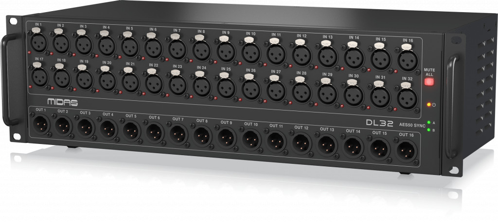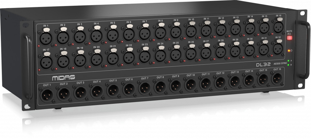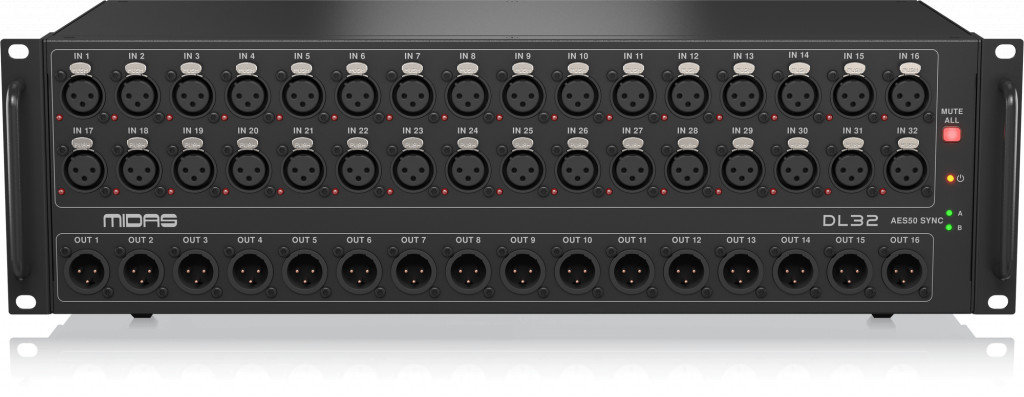 A digitális keverés gyakorlatilag mindent forradalmasított az élő szórakoztató produkciós munkafolyamatban. A DL32 a tökéletes megoldás a színpadi tehetségek összekapcsolására a házimozi (FOH) keverőpulttal és a világ többi részével – a be-/kimenetekkel teli és rendkívül megfizethető DL32 digitális stage box. A DL32 32db Midas PRO sorozatú távvezérelhető mikrofon előerősítőt, valamint 16 szimmetrikus analóg XLR visszatérő bemenetet kínál a színpadi oldalon – és mindössze egyetlen Cat 5e kábelre van szükség hozzá. Míg a Klark Teknik, a high-end digitális hangfeldolgozás piacvezetője, feltalálta az AES50 SuperMAC technológiát, amely mindezt lehetővé tette – a kiváló gyártási volumenünk teszi a DL32-t rendkívül megfizethetővé.