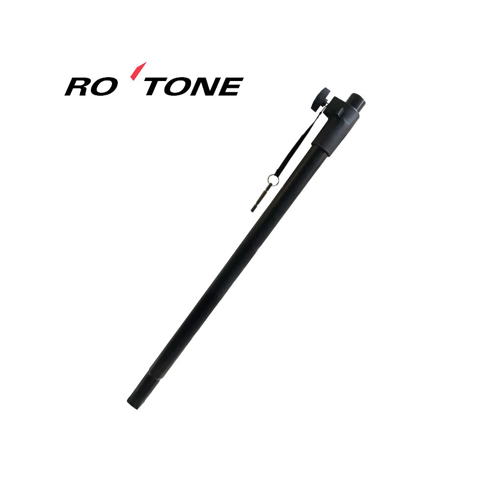 Állítható hosszúságú hangfalállvány a mélysugárzó és a szélessávú hangfal közé. A menetes szorítón kívül egy stifttel is rögzíthető az állvány magassága a nagyobb biztonság érdekében.