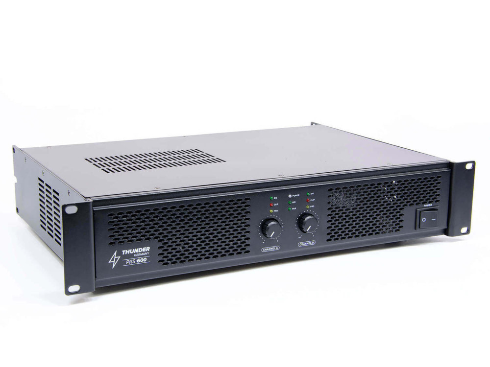 A Thunder Audio PRS szériájú végfokai kiemelkedő minőségi színvonalat képviselnek az európai piacokon. Az összes típusra jellemző a páratlanul nagy teljesítmény, és kiváló ár/érték arány. A kedvező ár ellenére, ebben a sorozatban is professzionális megoldásokat találunk. A végfokot aktív, ventilátoros hűtéssel és nagy méretű hűtőbordákkal látták el. Sztereo, Paralel és Bridge (híd) üzemmódban egyaránt használható. A megbízhatóságra a teljes körű védelem mellett a túlméretezett alkatrészek jelentik a legnagyobb garanciát, a terméket ésszerű körülmények között lényegében nem lehet túlhajtani. Maximális teljesítményfelvétele igen magas, így hangja erőteljes mélyeknél sem csuklik meg, mélyládák és nagyobb hangrendszerek hajtása sem jelent neki problémát. A teljes körű védelem mellett a beépített limiter garantálja a hosszú távú megbízhatóságot. Túlhajtás esetén a Limiter automatikusan csökkenti a hangerőt, megóvva ezzel az erősítőt az esetleges problémáktól. Bemeneti érzékenysége három érték között állítható, így akár kisebb bemeneti jel esetén sincs probléma, előerősítő nélkül is jól használható. A végfok teljesítményéhez és árához képest tisztességes tömeggel rendelkezik, jól megépített masszív darab, toroid trafóval szerelve. Erőteljes, dinamikus hangzás jellemzi, mellyel kiemelkedik a többi gyártó hasonló árú terméke közül. Nem összetévesztendő az olcsó, belépő szintű kategóriával. A termék ideálisan alkalmazható zenekari felhasználásra, házibuliban, kisebb hangosításokon és discoban is. Sem hangminőségben, sem teljesítményben nem fog csalódást okozni.