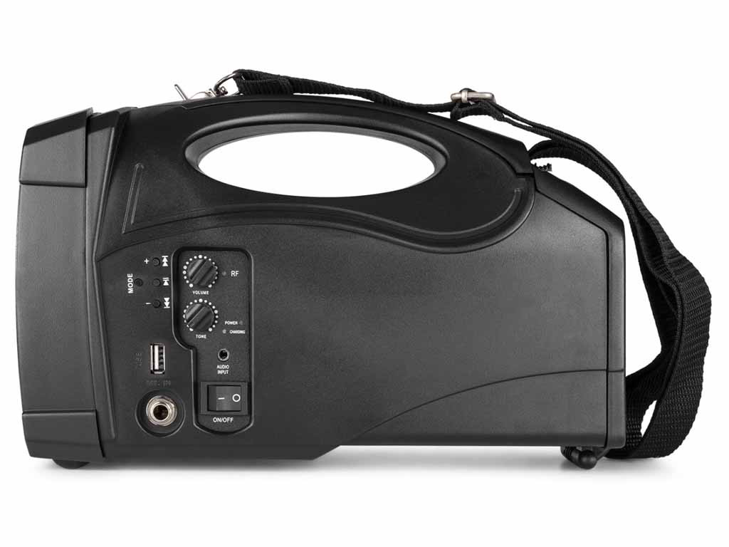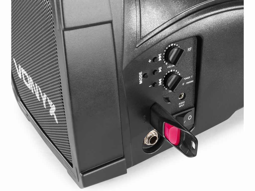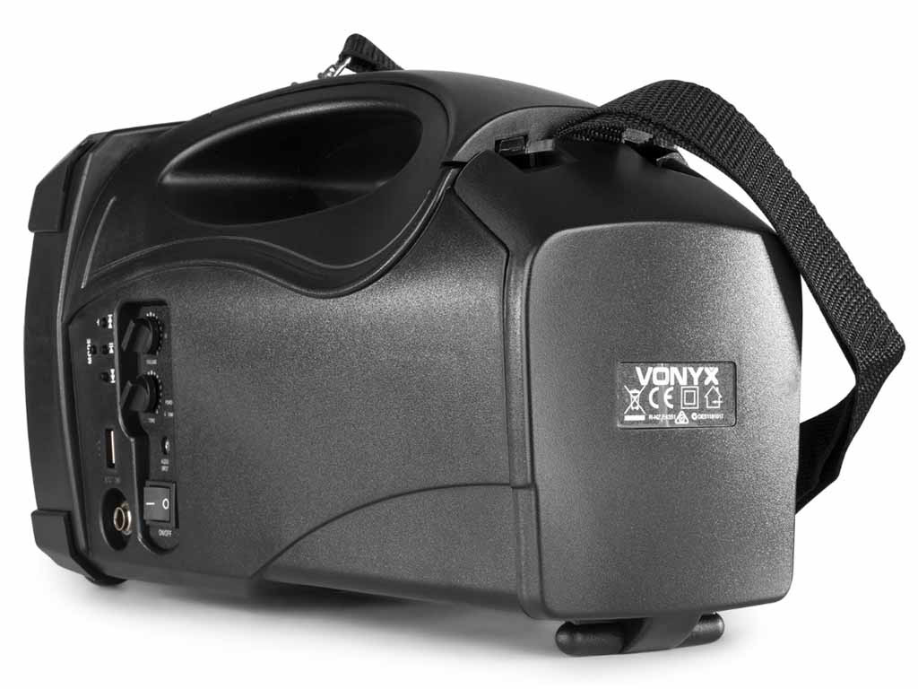 A Vonyx ST-014 a gyártó egyik legkisebb, kifejezetten beszédhangosításra kifejlesztett hordozható hangfala. Beépített akkumulátorral rendelkezik, egy töltéssel átlagos felhasználás mellett akár 3-5 órán keresztül is használható. A hangfal az emberi hang frekvenciatartományát tudja megfelelő minőségben megszólaltatni, nem zene hallgatásra tervezték, de alkalomszerűen, ünnepségeken egy-egy zene, himnusz lejátszása nem okoz neki problémát. A termék beépített USB MP3 lejátszóval rendelkezik, képes pendrive-ról MP3 zenék lejátszására. A lejátszó egyben BLUETOOTH vevő is, amire akár laptoppal, akár mobiltelefonnal tudunk csatlakozni. A Bluetooth kapcsolat segítségével megoldható, hogy a telefonunkon lejátszott zene kábeles kapcsolat nélkül szólaljon meg a hangfalon. A Bluetooth hatótávolsága 3-5 méter. Beépített trafóval rendelkezik, ennek köszönhetően hálózatról is használható, a töltés is ily módon történik, a maximális töltöttséget egy LED jelzi. A szett tartalmaz egy vezeték nélküli mikrofont is, melynek vevője a hangfalba van építven ezen kívül egy nagy Jack bemeneten keresztül további mikrofont köthetünk rá. 2,2 kg-os tömegével szállítása nagyon egyszerű valamint ideális kialakításának köszönhetően könnyedén kézben tartható a használata során. Ajánlani tudjuk elsősorban beszédhangosítási célokra, idegenvezetőknek, iskolai rendezvények, beszédek hangosítására.